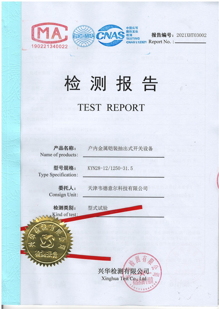 戶內(nèi)金屬鎧裝抽出式開(kāi)關(guān)設(shè)備檢驗(yàn)報(bào)告