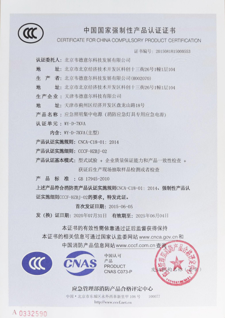 應(yīng)急照明集中電源WY-D-7KVA產(chǎn)品認(rèn)證..