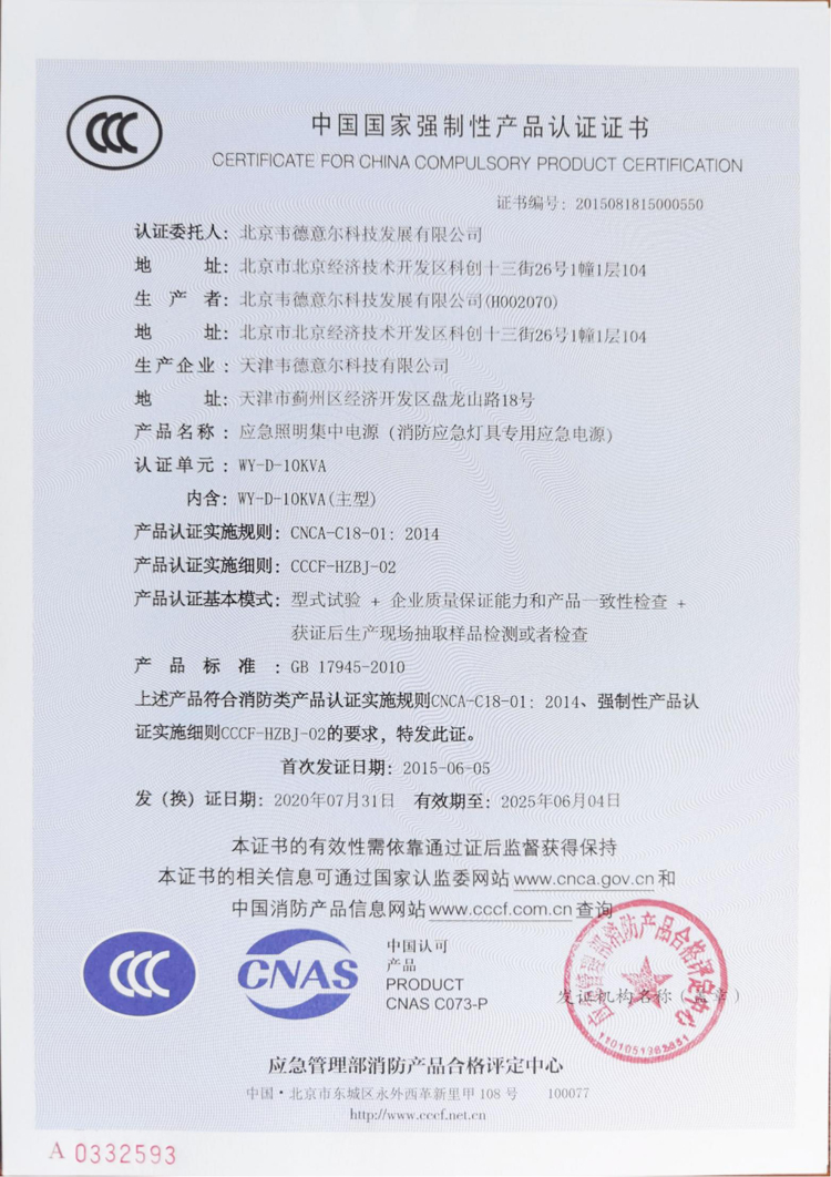 應(yīng)急照明集中電源WY-D-4KVA產(chǎn)品認(rèn)證..