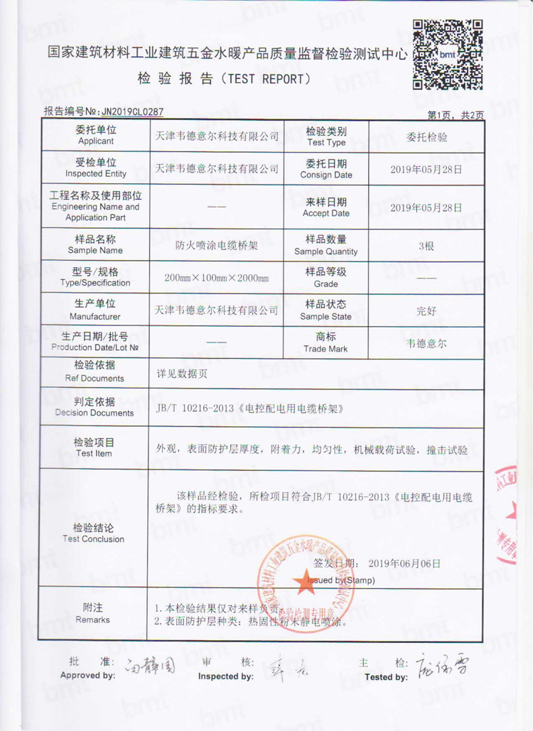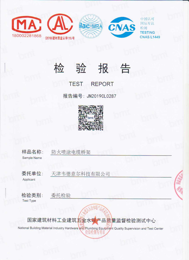 防火噴涂電纜橋架檢驗(yàn)報(bào)告