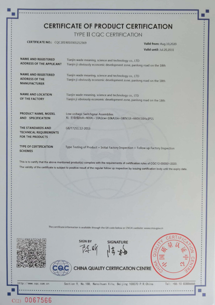 動力柜-55型(低壓成套開關設備)產(chǎn)品認證證書