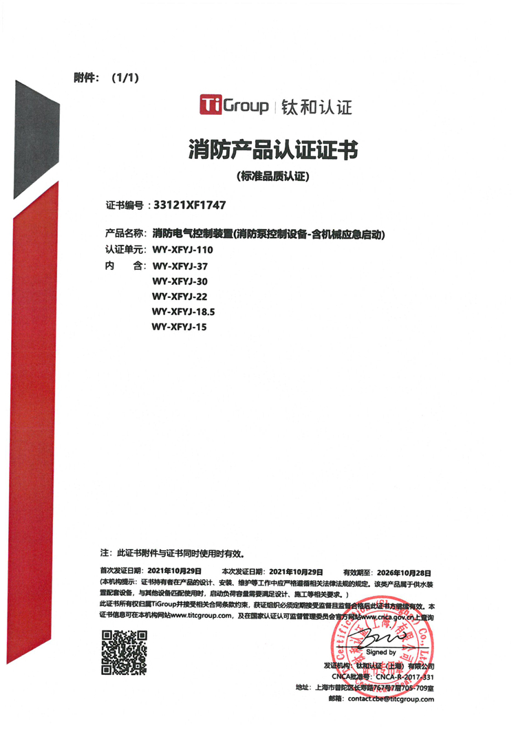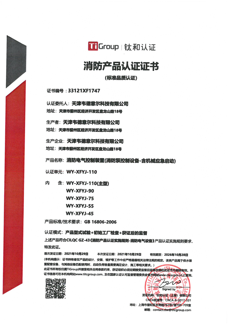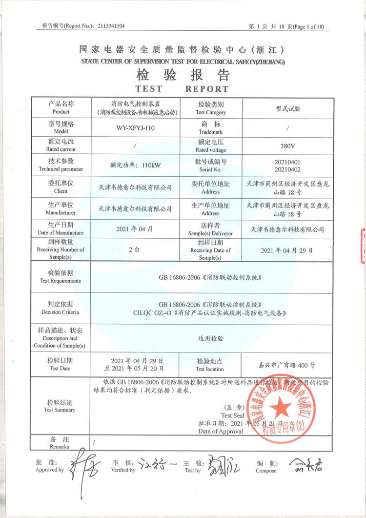 消防電氣控制裝置(消防泵控制設(shè)備-含機(jī)械應(yīng)急啟動)認(rèn)證證書及檢驗(yàn)報(bào)告