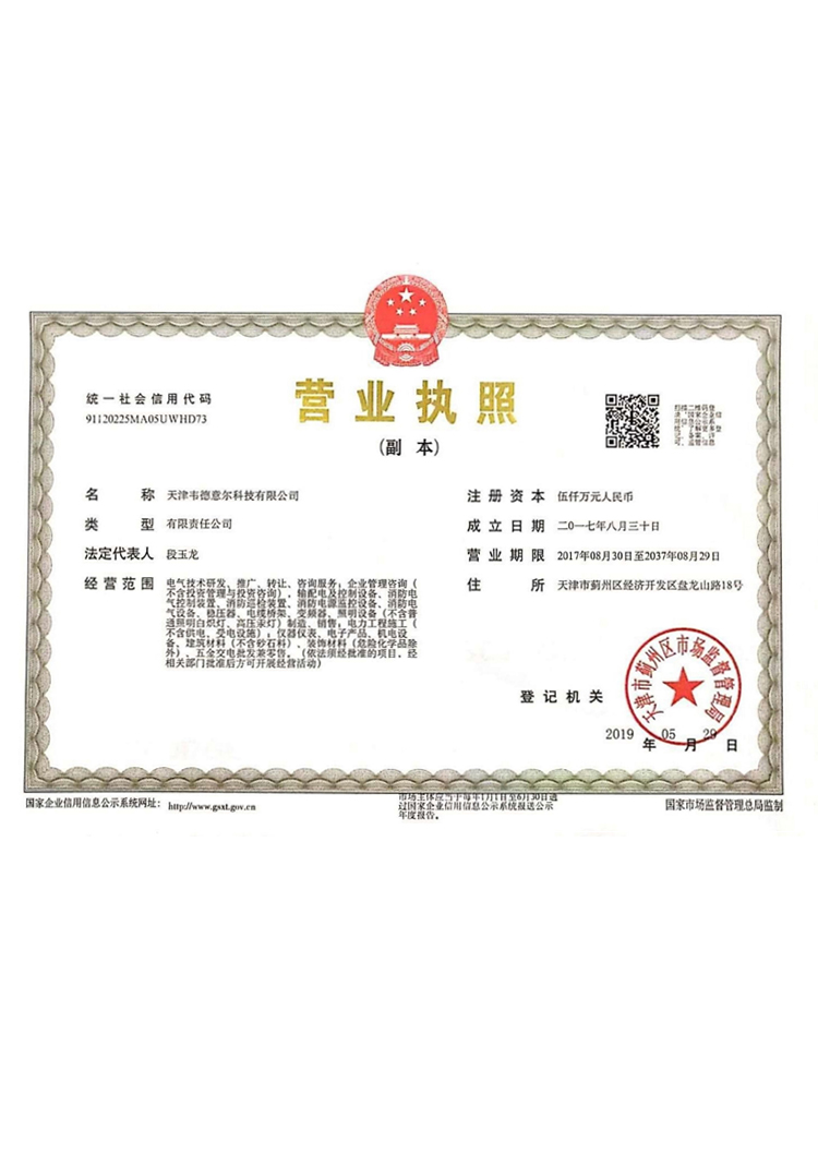 > 資質(zhì)榮譽(yù) > 天津韋德意爾科技發(fā)展有限公司